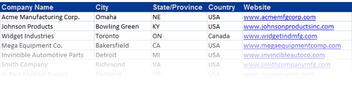 The basic website statistics program can tell you how many visitors you have and the country they are from, but does it tell you the company name, website and what city, state/province they are located in? Shattered Stats is a service that does just that, and it's perfect for the manufacturing industry and other businesses that provide products and services to mid-sized or large companies. We can pinpoint the company name, precise location (within a 25 mile radius) and company website of visitors to your site. Not all visitors can be traced, however on average approx. 7-10% of them can. So if your site gets 2000 unique visitors per month, that's as many as 200 pre-qualified leads for your sales team to follow! In addition to generating leads, we can sometimes even tell if your competition is spying on you. Below is an example of the information you'll get with Shattered Stats: |